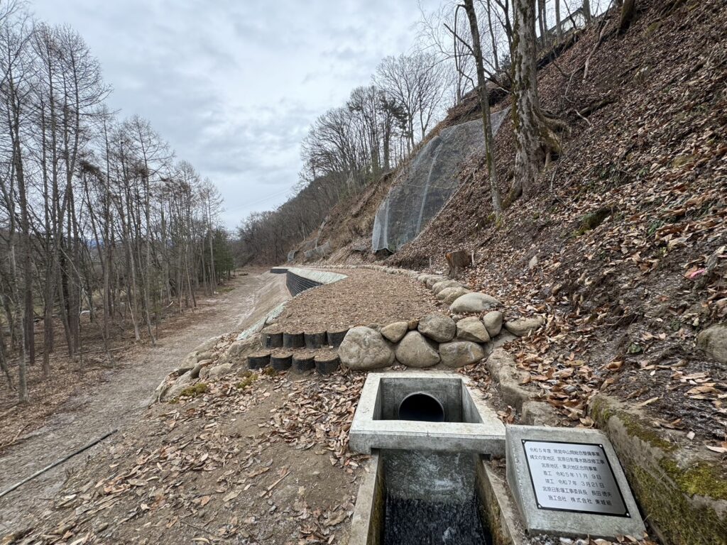「本工事では、急峻な地形における法面の安定化と、排水機能の強化を重点的に実施しました。周辺環境に配慮しつつ、長期的な耐久性を確保する施工を行っています。」